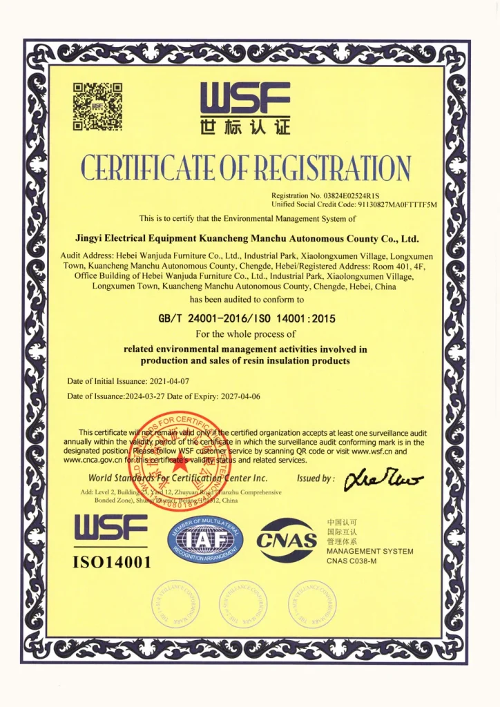 ООО «Цзини электрооборудование Куаньчэн-Маньчжурский автономный уезд» (далее – Цзини Электрик) – специализированная компания по проектированию, производству и продаже электроизоляционных изделий. Предприятие сосредоточено на разработке, создании и выпуске изоляционных компонентов для электрооборудования высокого, среднего и низкого напряжения, а также продукции трансформаторов тока и напряжения, ограничителей перенапряжений и изделий для интеллектуальных энергосетей.